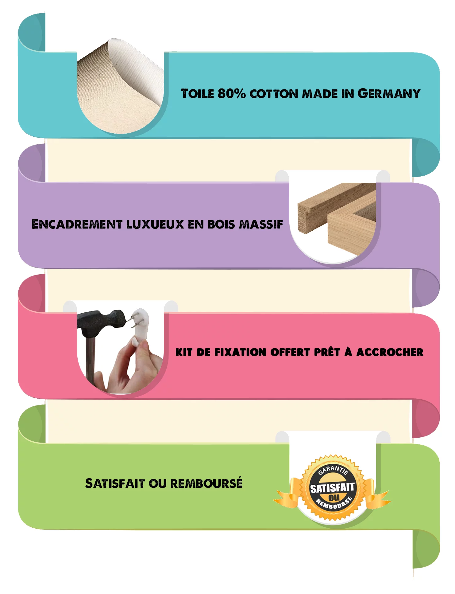 Protection : Avec une impression haute définition protégée contre les UV, le tableau assure une conservation longue durée des couleurs. De plus, la toile est résistante à l’eau et à la poussière, ce qui garantit une durabilité accrue et un entretien facile.